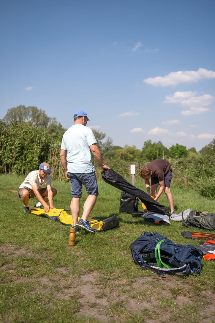Onderweg neem je materiaal mee dat je in de showroom niet kan testen — een packraft voor lange afstanden of eentje voor snelheid, een peddel die robuust is voor met de kinderen of eerder licht,… Wij zorgen voor het materiaal.