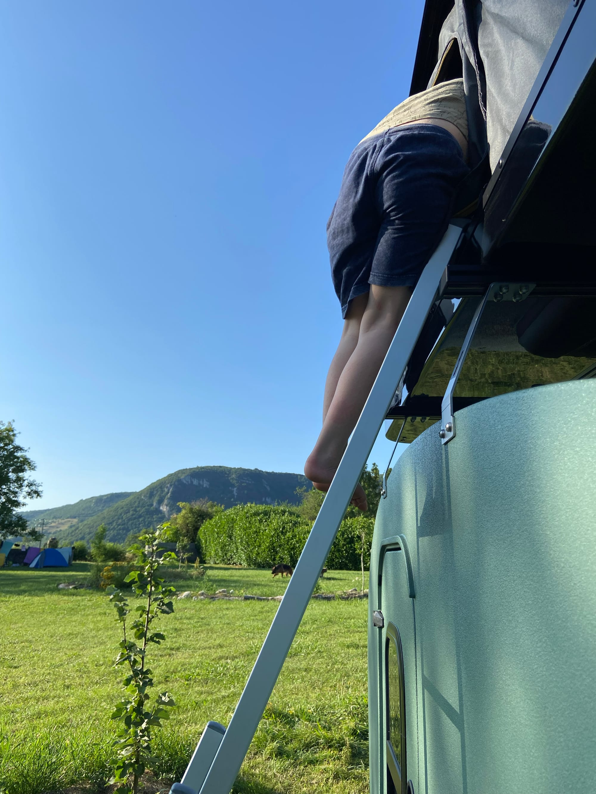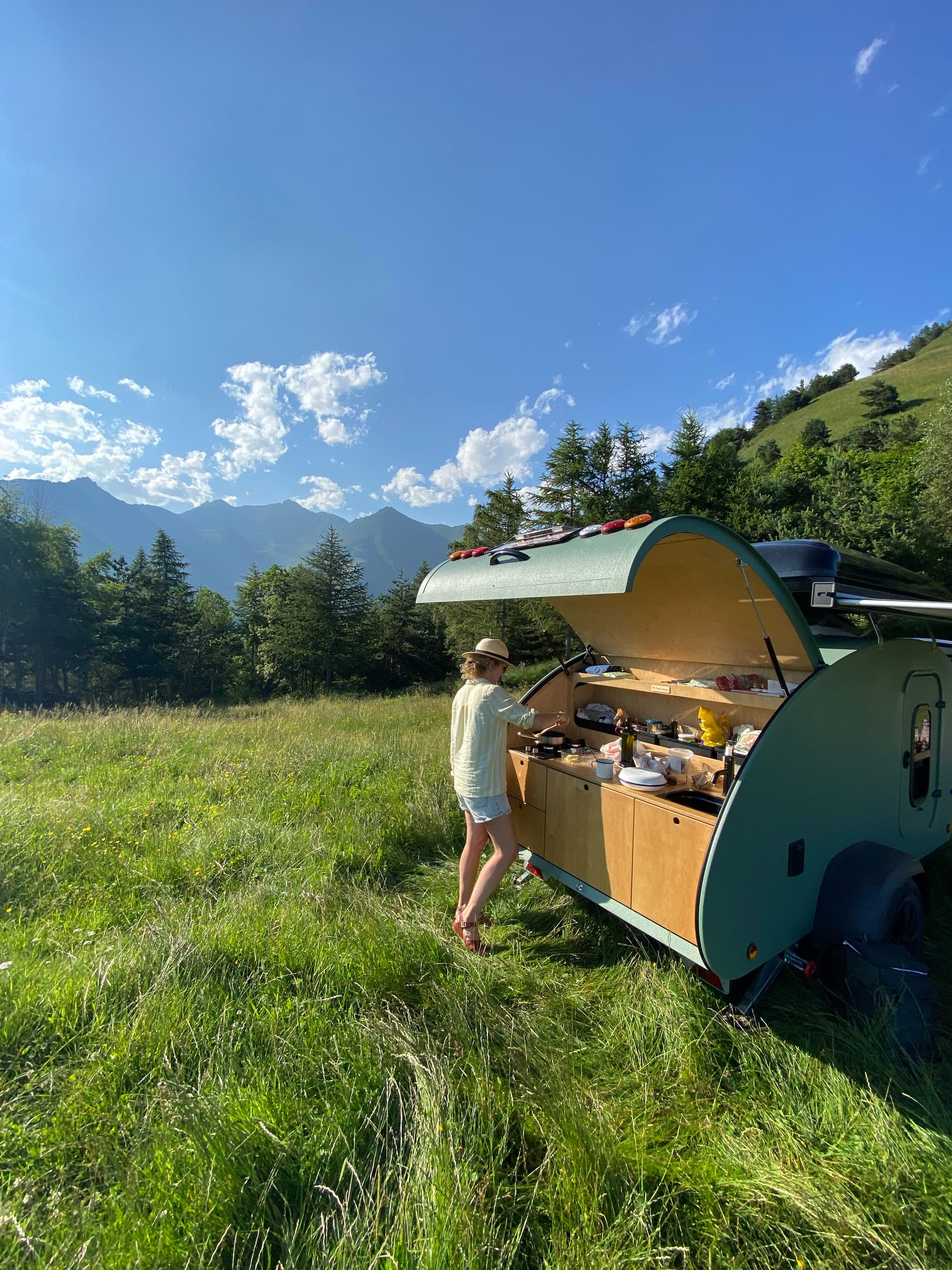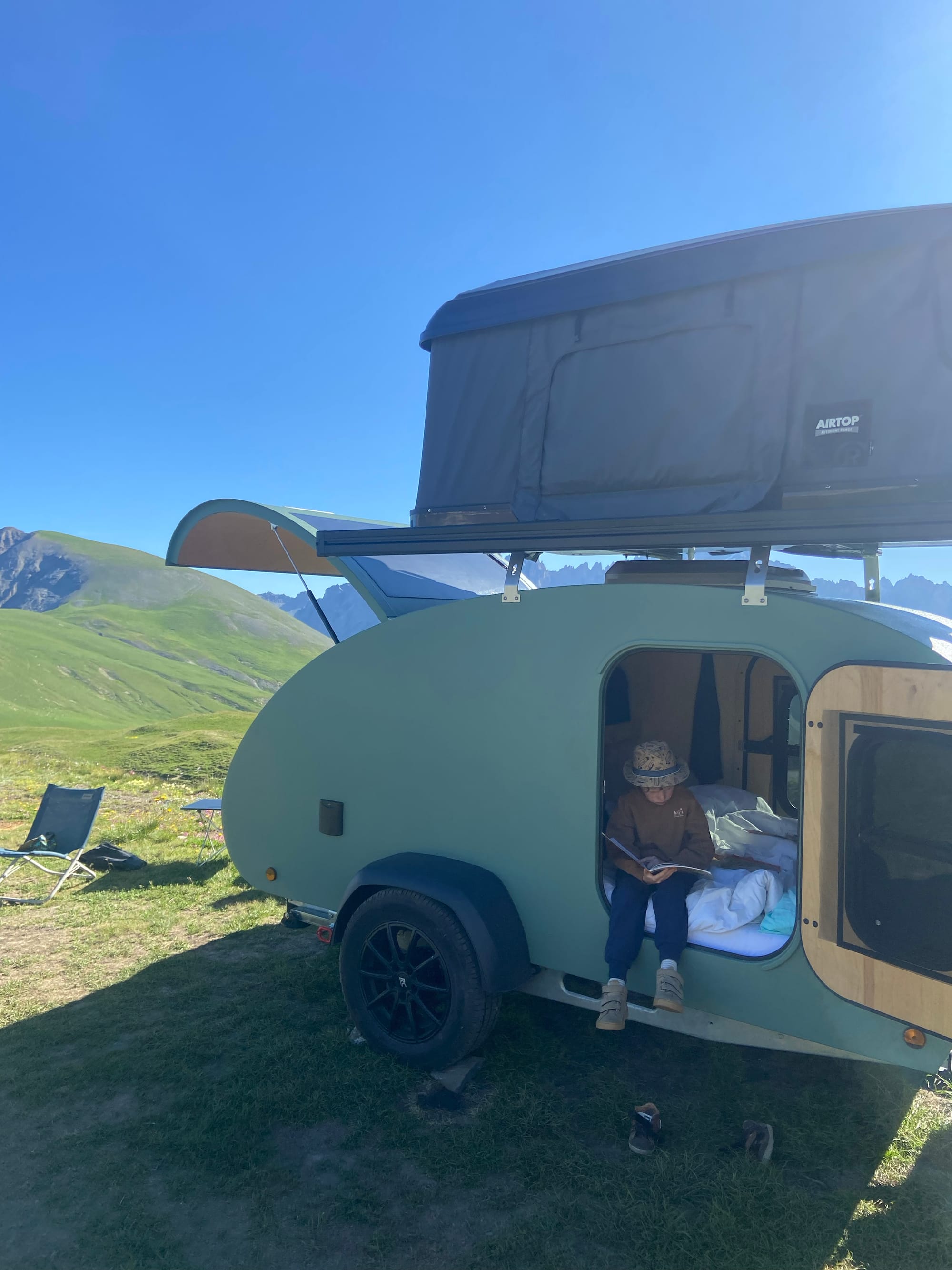 Vaak zijn teardrops aangepast aan ofwel on-road ofwel off-road omstandigheden. Maar deze on-road trailer kan alvast een offroad avontuurtje aan. We reden via een uitdagende bergpas naar één van onze mooiste kampeerplekjes ooit. Op enkele passanten met enduro motor én uitgeruste overland jeep na kwamen we tijdens de 45min durende klim enkel een vos en wat koeien tegen. Een kampvuurtje met prachtig uitzicht maakte deze dag compleet.