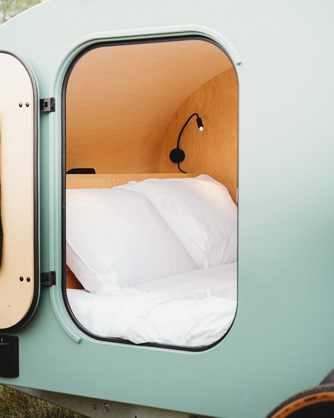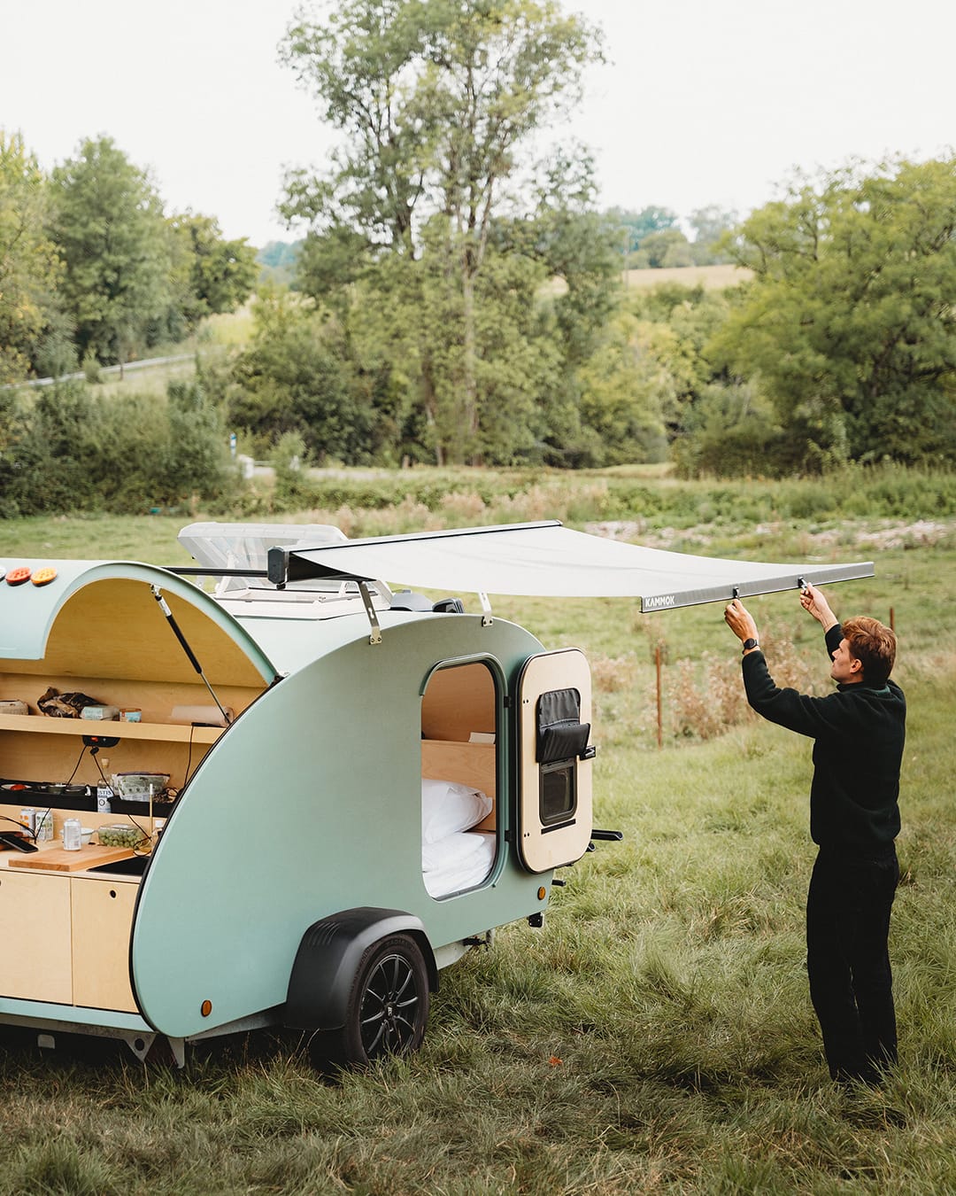 Huur deze teardrop: minimum 2 nachten zonder kilometer beperking.