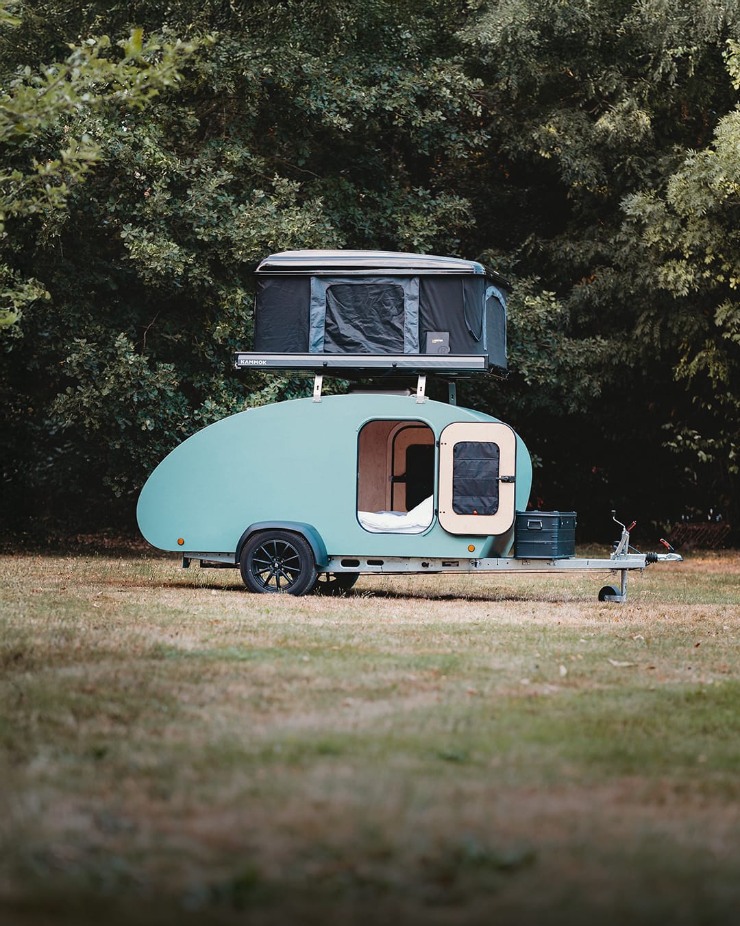 We bieden ook de optie om een daktent op de teardrop te plaatsen zo heb je slaapplaats voor 4-5 personen.