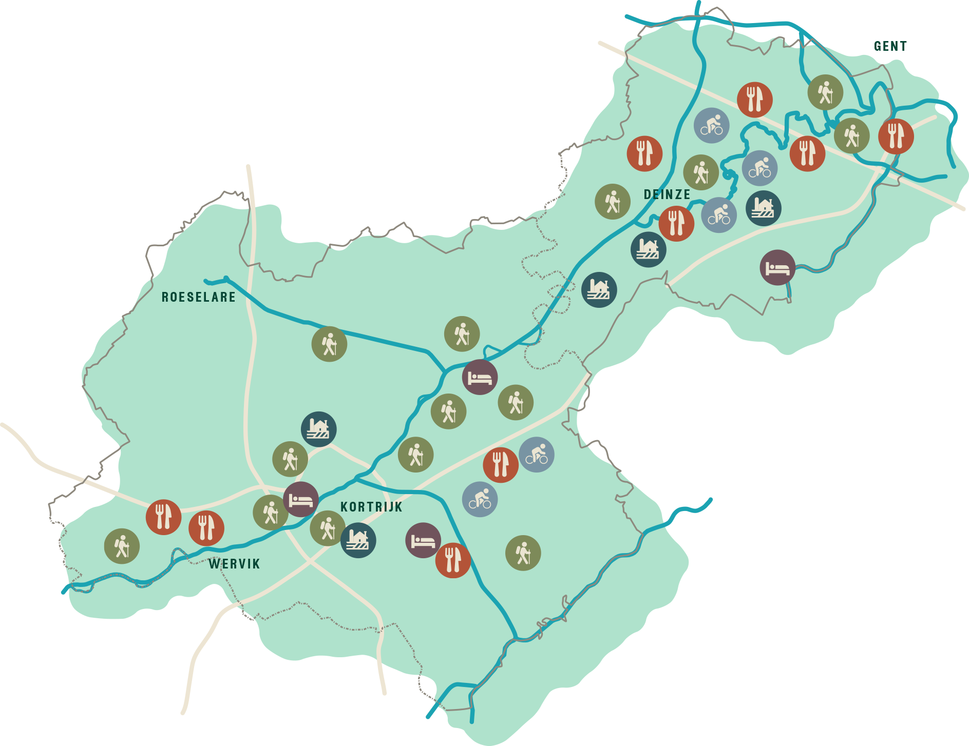 - Volg de meanderende Leie en geniet van groene landschappen
