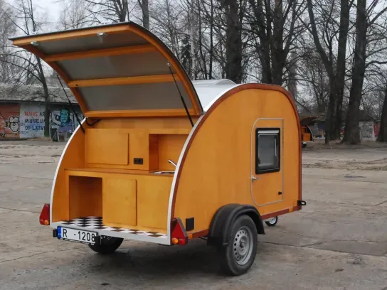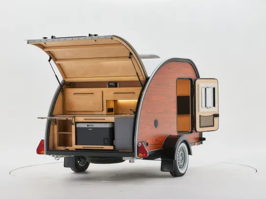 De Kulba Woody is een kwalitatieve en te personaliseren teardrop. Uitermate geschikt voor reizigers die op zoek zijn naar compact reizen met een compacte wagen.